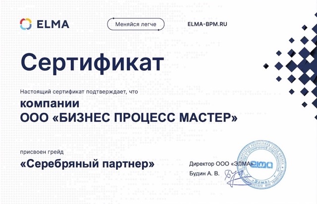 ООО «Бизнес Процесс Мастер» — официальный серебряный партнер ELMA, специализирующийся на внедрении и настройке современных Low-code платформ для автоматизации бизнес-процессов.